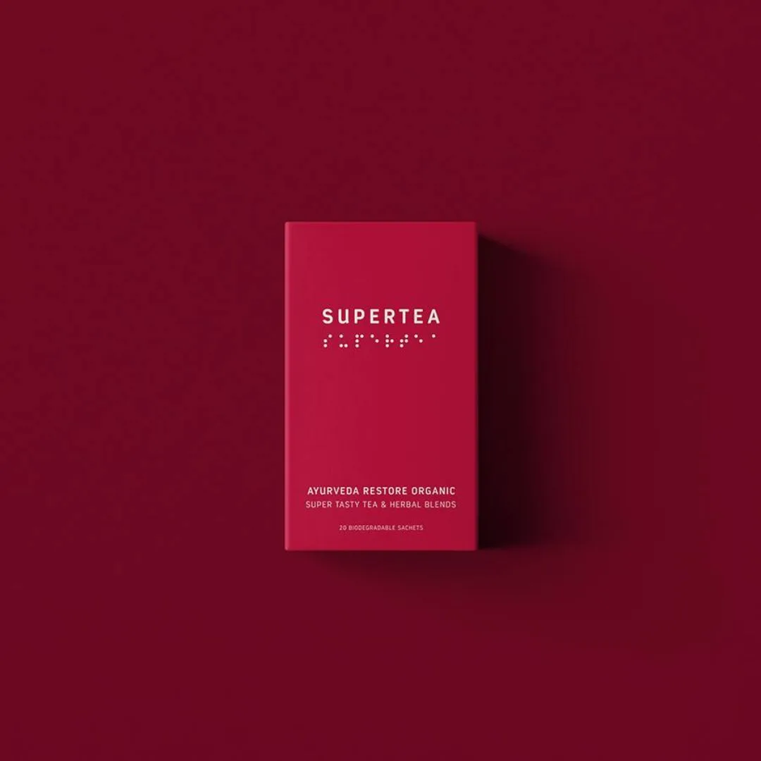 Ayurveda Restore er en harmonisk blanding inspirert av ayurvedisk tradisjon, laget for å balansere kropp og sinn. Med varmende ingefær, krydret kanel og kardemomme kombinert med friskheten fra sitrongress og limeskall, får du en rik og smakfull kopp te. Denne teen er en del av Supertea-serien fra Teministeriet, kjent for sine nøye utvalgte, økologiske teblandinger med naturlige ingredienser. Hver pakke inneholder 20 individuelt pakkede teposer laget av biologisk nedbrytbart materiale.