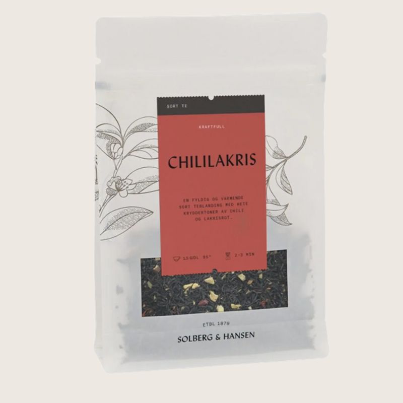 Chililakris byr på en unik og smaksrik kombinasjon, hvor den milde sødmen fra lakrisrot møter den kraftige varmen fra chili. Den fyldige sorte teen gir en solid base, mens de krydrede tonene sørger for en varm og pirrende smaksopplevelse.