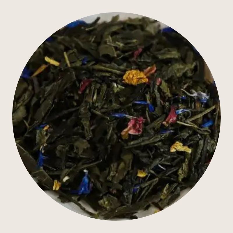 Green Sweet Bergamot er en elegant grønn te der nøye utvalgte ingredienser gir en sofistikert og harmonisk smaksopplevelse. Blomstene fra rose, kornblomst og solsikke tilfører subtile florale noter, mens naturlige aromaer gir en lett sitrusfriskhet.