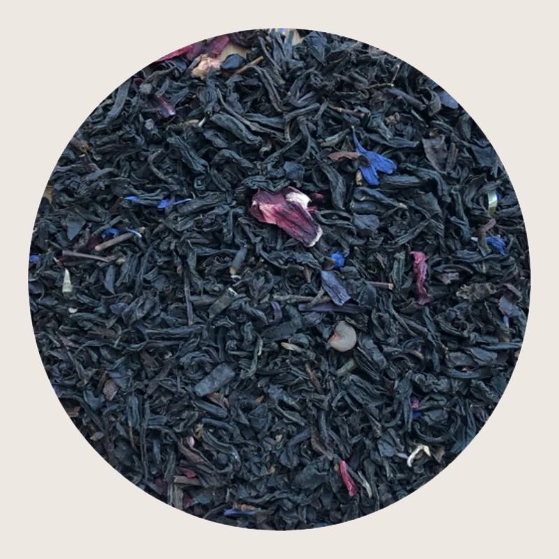 Kjærlighetsdrøm er en balansert og fruktig sort teblanding, hvor søte tropiske frukter og steinfrukt møter den friske syrligheten fra hibiskus. Kornblomstbladene tilfører et elegant visuelt preg, og teen har en rund og innbydende smaksom gjør den perfekt for alle anledninger.