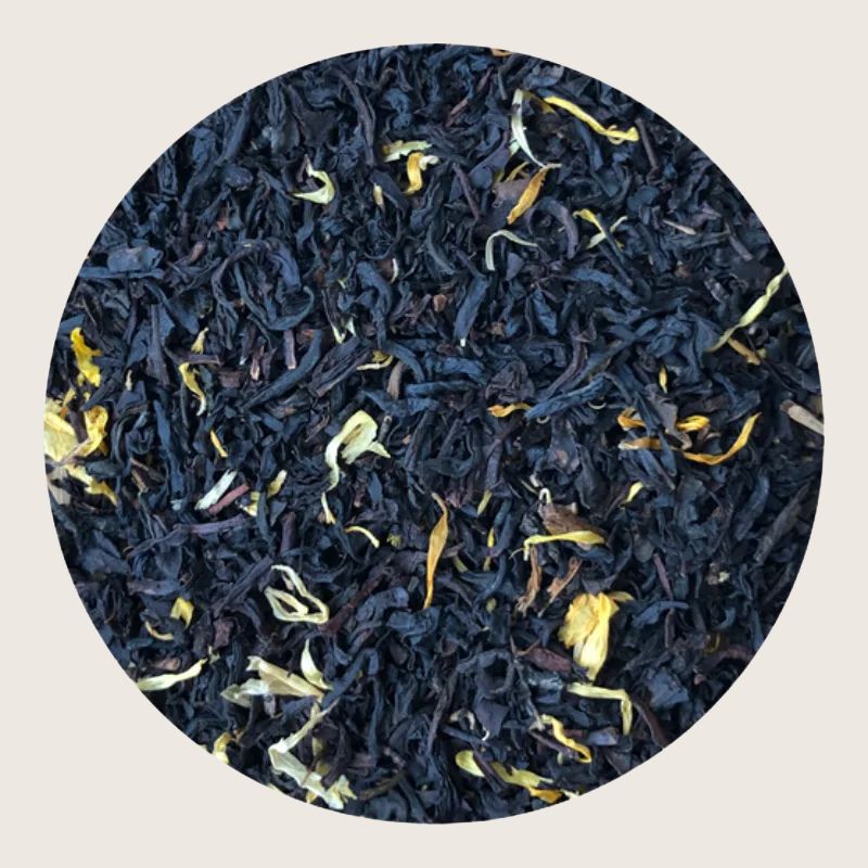 Mango Noir er en elegant og smakfull sort te, hvor den dype karakteren til fyldig sort te møter den naturlige sødmen fra mango. Ringblomstkronbladene tilfører et subtilt floralt preg som løfter smaken ytterligere.