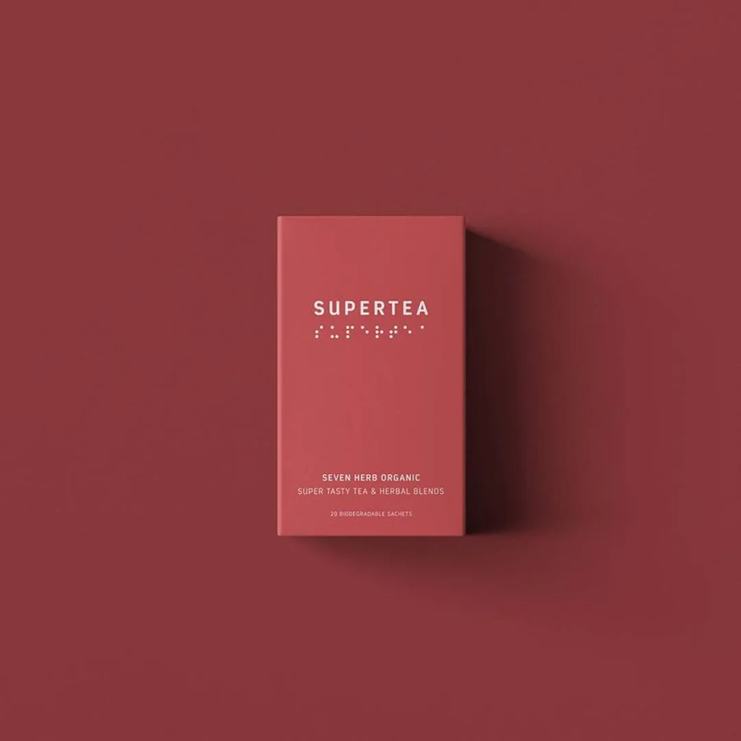 Seven Herb er en velsmakende og balansert urtete der sødmen fra anis og bjørnebærblad møter friskheten fra peppermynte og sitrongress. Kamille og appelsinskall tilfører en mild floral sødme, mens koriander gir en lett krydret undertone. Denne harmoniske blandingen passer perfekt for deg som ønsker en lett, men smakfull kopp te. Supertea-serien fra Teministeriet er kjent for sine nøye utvalgte, økologiske teblandinger med naturlige ingredienser. Hver pakke inneholder 20 individuelt pakkede teposer laget av biologisk nedbrytbart materiale.