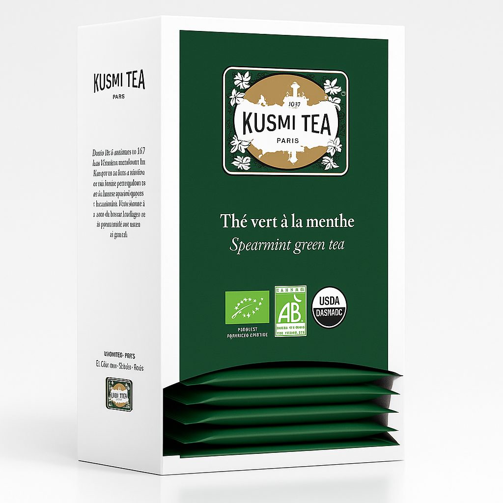 Kusmis Thé Vert à la Menthe (Spearmint Green Tea) er inspirert av marokkansk tradisjon, men laget med Kusmis kjente presisjon og sans for balanse. Den friske grønnmyntearomaen møter en silkemyk grønn tebase, og sammen skaper de en forfriskende og elegant smak. Dette er en kopp som både frisker opp og gir en følelse av ren kvalitet – perfekt for den som ønsker mer enn bare en vanlig myntete.