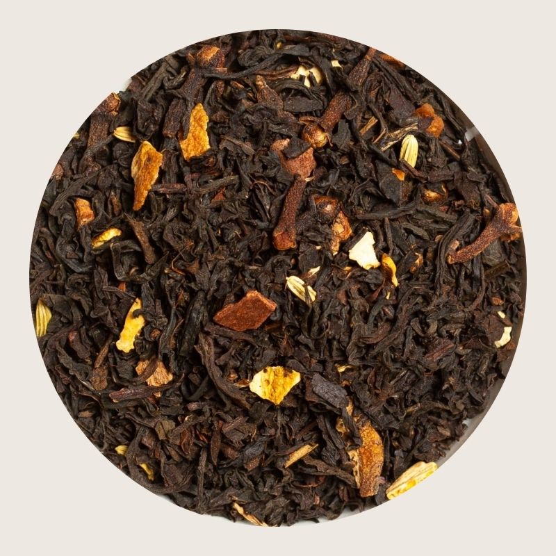 Sort te (Assam, Sri Lanka), appelsinskall, nellik, fennikel, knust kanel, naturlig krydderaroma.
